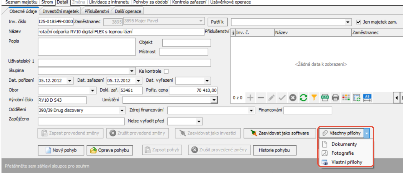 Všechny přílohy lze zobrazit v seznamu majetku, kliknutím na ikonu "sponky"