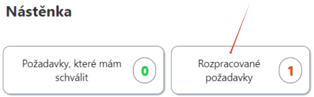 Cílový vlastník požadavku jej bude mít zobrazen také na Nástěnce Albíny mezi "Rozpracovanými požadavky"