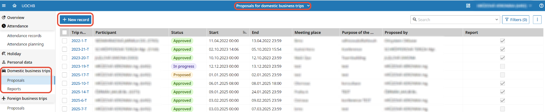 Once your travel proposal is approved, the travel will be transferred to your attendance record automatically. It is therefore no longer necessary to request a business trip in OKbase (this would create duplication).